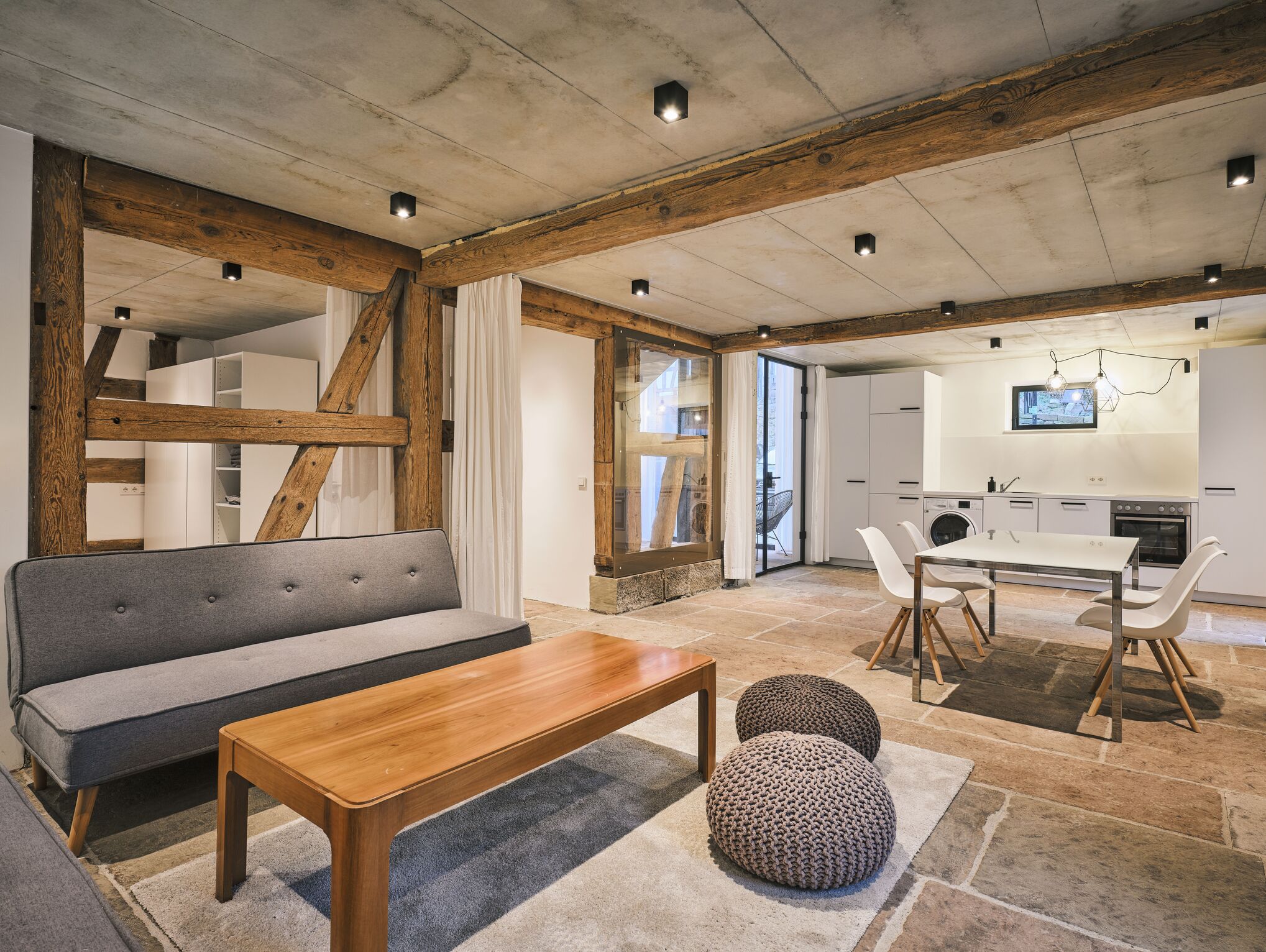Die "Alte Scheune" wurde aufgrund ihres historischen Wertes unter Denkmalschutz gestellt. Trotz ihrer alten Struktur wurde sie umfassend kernsaniert, wobei darauf geachtet wurde, den Charme und die Authentizität des Gebäudes zu bewahren. Das Ergebnis ist eine gelungene Kombination aus modernem Komfort und historischem Flair.